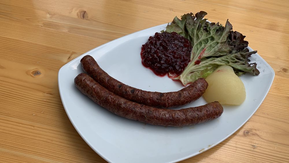 Anschließend radelten wir zum Campingplatz am großen Weserbogen. In der Außengastronomie des Campingplatzes machten wir unsere Mittagspause bei Salat und Rehbratwürstchen.