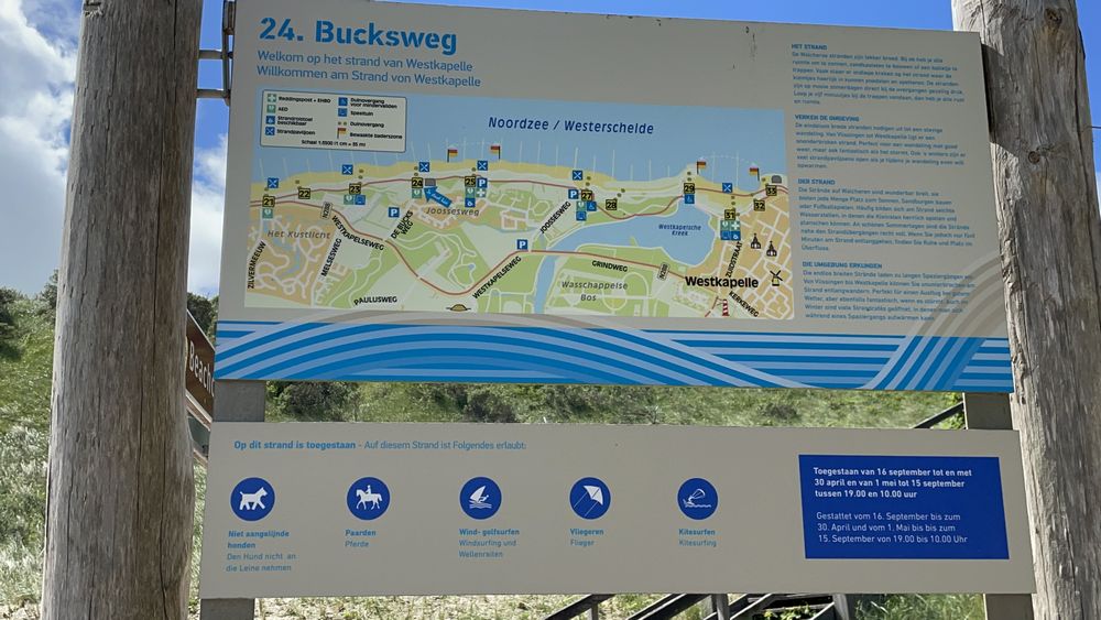 Dabei fahren wir durch den schönen Dünengürtel bei Zoutelande. Kommen an einem alten Bunker vorbei. Passieren das Widerstandsnest Fledermaus.