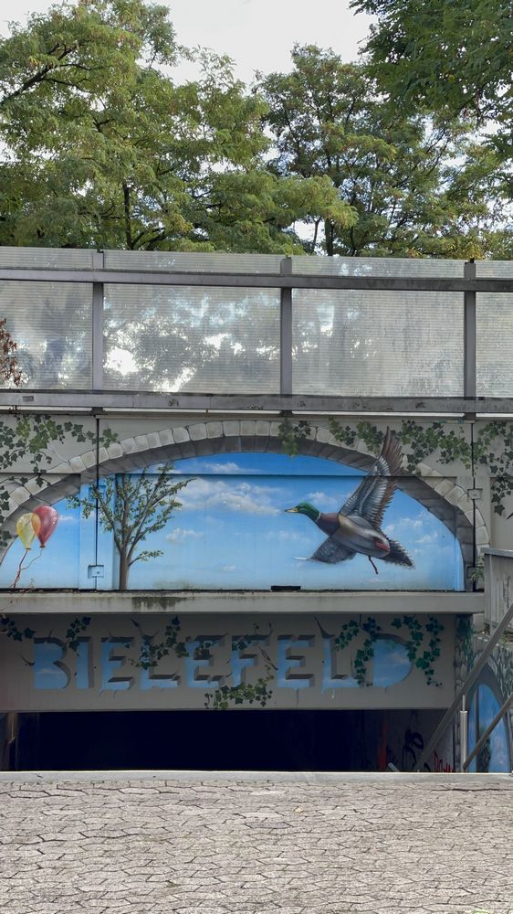 Heute wieder ein Versuch. Obwohl ab 15:00 h Regen angesagt ist, machen wir uns, bei schönstem Herbstwetter, auf den Weg nach Bielefeld. Und obwohl es ja heisst - Bielefeld am Wackelpeter, nennen wir unsere Tour - Brezen am Wackelpeter. Genau nach dem letzten Bissen von dem Brezen, begann es zu regnen. Da wir uns unterstellen konnten, kein Problem. Ca. 5 Minuten später kam die Sonne wieder durch und wir machten uns auf den Rückweg. Heute mal experimentierfreudig, fuhren wir auf einem sehr schmalen Wanderweg, oberhalb des OWDs, durch den Wald. An einer besonders engen Stelle bin ich mit dem Lenker an einem Ast hängen geblieben und habe den Weg ein Stück rutschend zurückgelegt. Das Fahrrad ist beim Ast geblieben. Alles blieb heil nur die Hose kann jetzt in die Wäsche. Dieser Weg brachte die Trekking Räder an ihre Grenze. Hier würde man besser mit einem MTB fahren. Noch besser würde man sagen: Ein Königreich für ein Pferd.